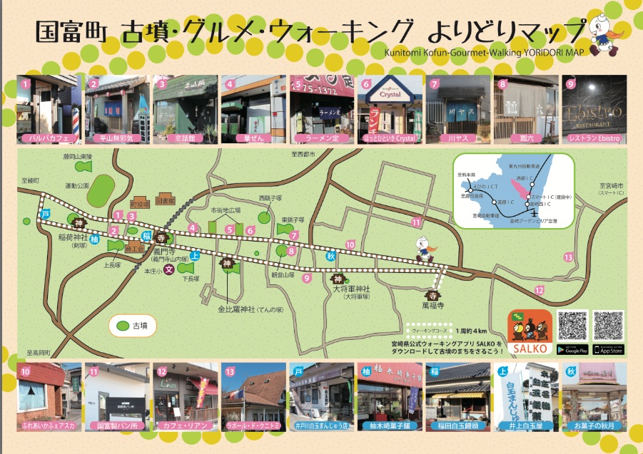 【国富町】(お手軽コース)古墳・グルメ・ウォーキングよりどりマップ